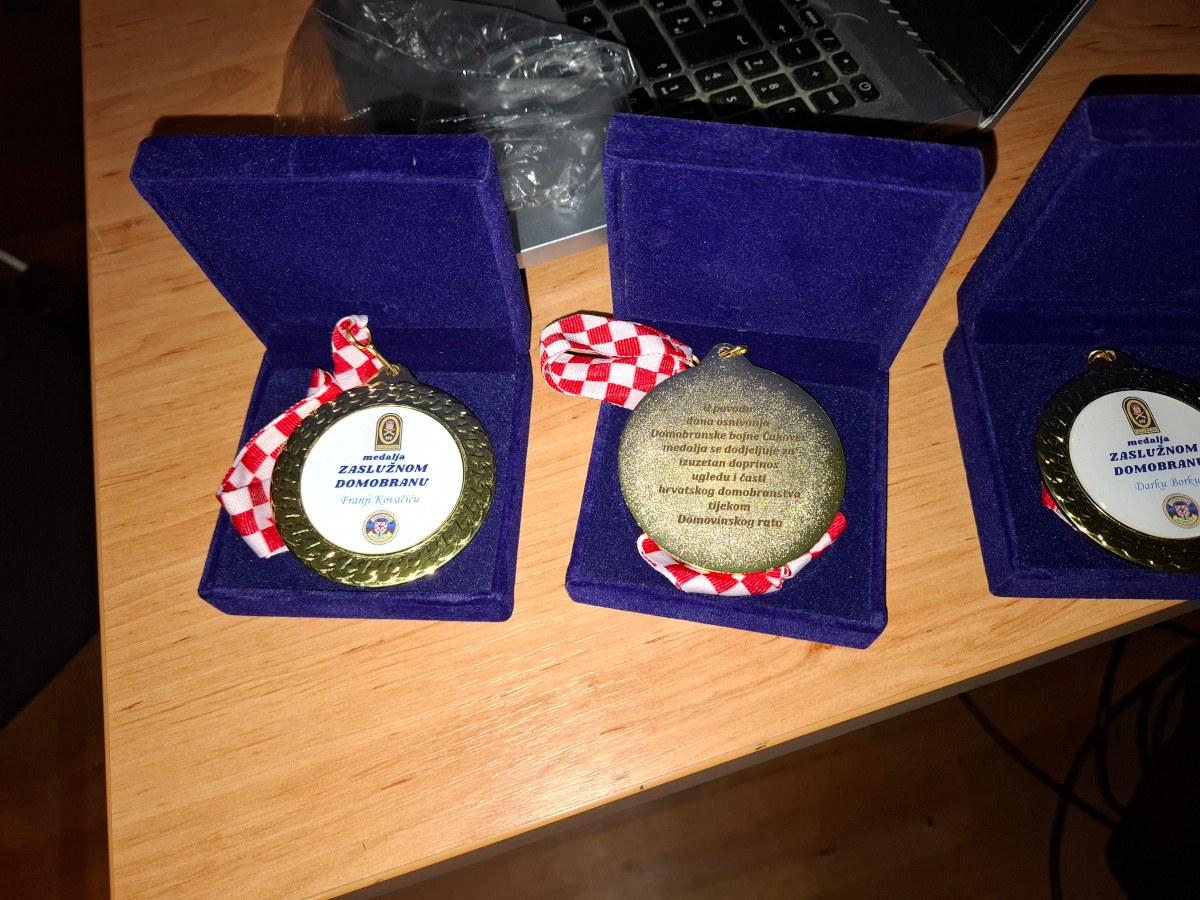Tajnica Društva VETERAN, Ines Miljančić je zatim pročitala Odluku predsjednika Društva VETERAN, Zdravka Holcingera – Gige, kojom je dodijelio medalje „ZASLUŽNI DOMOBAN“ gospodinu Franji Kovačiću – zamjeniku zapovjednika i pomoćniku zapovjednika za logistiku Domobranske bojne Čakovec, gospodinu Darku Borko – ratnom pomoćniku zapovjednika za logistiku 2. bojne 24. domobranske pukovnije (slijednice Domobranske bojne Čakovec) i gospodinu Josipu Lisjaku – ratnom zapovjedniku 2. bojne 24. domobranske pukovnije (slijednice Domobranske bojne Čakovec).